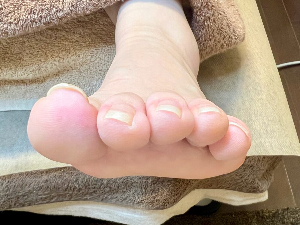 確認させていただくと、母趾の両サイドが皮膚に食い込んで、外側の皮膚が硬くなっていました。