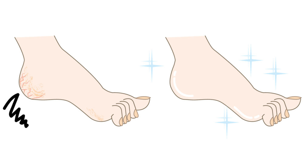 かかとは皮脂がないため、油分を補ってあげないと乾燥しやすくなります。