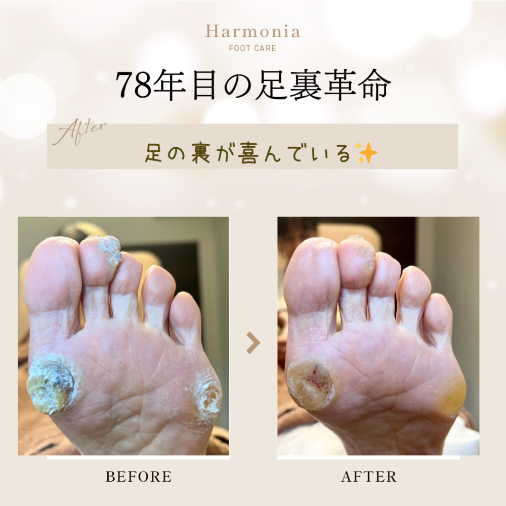 「78年生きてて初めて」こんなケアを受けたというお客様。年齢を重ねても、足は生まれ変われるんです。